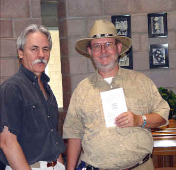 Brad Stoddard with his picture "Dream Winged Dance" ... and with my picture "On the Road"