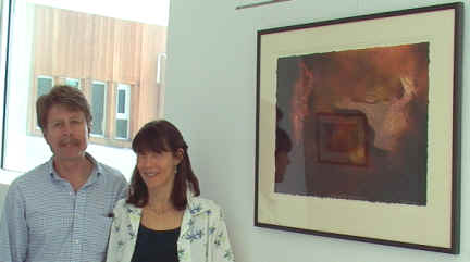 Ursula Freer with her picture "Secret Garden" ... and her husband Neil and daughter (in red)
